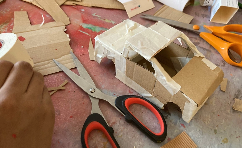 Im Werkatelier kannst du nach Herzenslust schnippeln, kleben, nähen, hämmern, schleifen, schneiden, sägen und pröbeln. Wir helfen dir gerne!