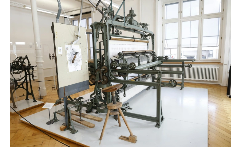 Sie wird jeweils am Donnerstag und Freitag von 11.30–16 Uhr sowie am ersten Samstag im Monat von 12–16 Uhr in Betrieb genommen. An der Maschine arbeitet Maria Weber, eine der wenigen Personen in der Ostschweiz, die die komplexe Bedienung noch beherrschen. Sie stickt sowohl traditionelle Motive als auch moderne Interpretationen, die im Rahmen eines Studienprojekts mit der Hochschule Luzern entworfen wurden. Sie können im Shop des Textilmuseums käuflich erworben werden.
