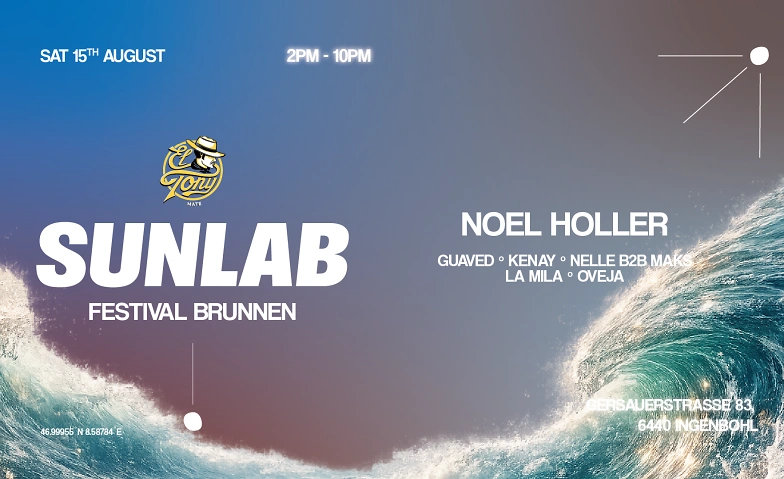 Erlebe das Sunlab Festival am 02. Mai 2026, direkt am Vierwaldstättersee in der Badi Hopfräben in Brunnen – Tauche ein in eine unvergessliche Atmosphäre aus Afrohouse und Melodic Techno, während du den Tag von 14:00 bis 22:00 Uhr in vollen Zügen genießt.