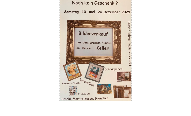 Grosser Bilderverkauf - offener Keller Tickets Grosser Bilderverkauf - offener Keller Saturday, 20.12.2025, 09:00 Brocante - Offener Keller, 2540 Grenchen, CH Infomation