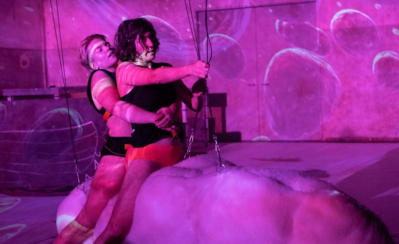 «A Long Story About Our Baby» is a performance about queer family fantasies. Two performers embark on a mission to make a baby. Moving through each other’s minds and talking through their bodies, they tell a love story reaching towards the baby – empathic, caretaking, rough and soft. They embody and deconstruct images of family in search for one that feels their own. Eevi, Olivia and Baby fall in and out of love and back again as they navigate utopias, biological barriers, political uncertainties and societal expectations of family.