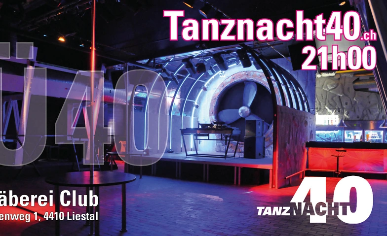 Tanznacht40 - WÄBEREI | Friday, 04.09.2026, 21:00 | WÄBEREI Eventlocation, 4410 Liestal, CH | Infomation | |
