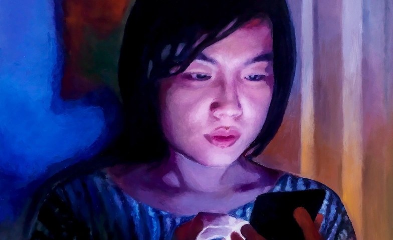 Silvia Gertschs Serie Handy Girls zeigt Porträts junger Frauen, die hochkonzentriert auf ihre Smartphones blicken. Der Widerschein der Bildschirme legt sich auf die Gesichter und taucht sie in geheimnisvolles Licht. Handy und junge Frau verschmelzen zu einer Einheit, die ein Mysterium zu bergen scheint. Auch die Heiligen in den historischen Hinterglasgemälden sind in übernatürliches Licht getaucht. Sie bilden mit der Lichtquelle, die anders als das Handy ausserhalb der menschlichen Sphäre liegt, eine mystische Einheit.