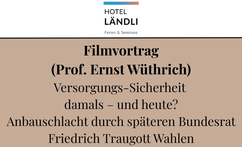Der Filmvortrag von Prof. Ernst Wüthrich widment sich dem Thema "Versorgungs-Sicherheit damals - und heute? Anbauschlacht durch den späteren Bundesrat Friedrich Traugott Wahlen".