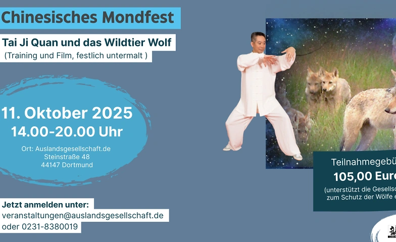 Die Auslandsgesellschaft lädt am Samstag, 11. Oktober 2025, zu einem besonderen Kultur- und Naturerlebnis ein. Im Mittelpunkt stehen Tai Ji Quan, die traditionelle chinesische Bewegungskunst, und die faszinierende Begegnung mit dem Wildtier Wolf.