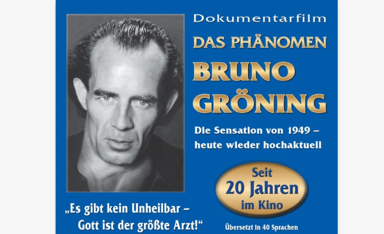 Der Dokumentarfilm „Das Phänomen Bruno Gröning – Auf den Spuren des Wunderheilers“ zeichnet die dramatischen Ereignisse jener Zeit nach: Original Film- und Tondokumente, Archivmaterial, über 50 Zeitzeugen-Interviews, dazu