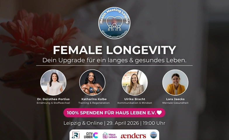 Wir laden dich herzlich zum exklusiven Spendenevent des Health Meeting Leipzig ein. Erfahre von vier Top-Speakerinnen, wie du heute die wissenschaftlich fundierten Weichen für dein Morgen stellst. Das Beste daran: Du investierst nicht nur in dich selbst, sondern unterstützt zu 100 % ein wichtiges Herzensprojekt.