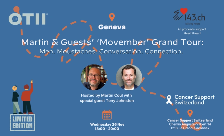 This Movember, Martin Coul brings his Grand Tour to Geneva for an evening of open dialogue on men’s mental health. Drawing on his own lived experiences, he focuses on tackling the conversations many shy away from, helping organisations and individuals address the root causes of poor well-being across all stages of life. He is also the host of The Hushed®, a podcast about men, stories, and what we don’t always say.