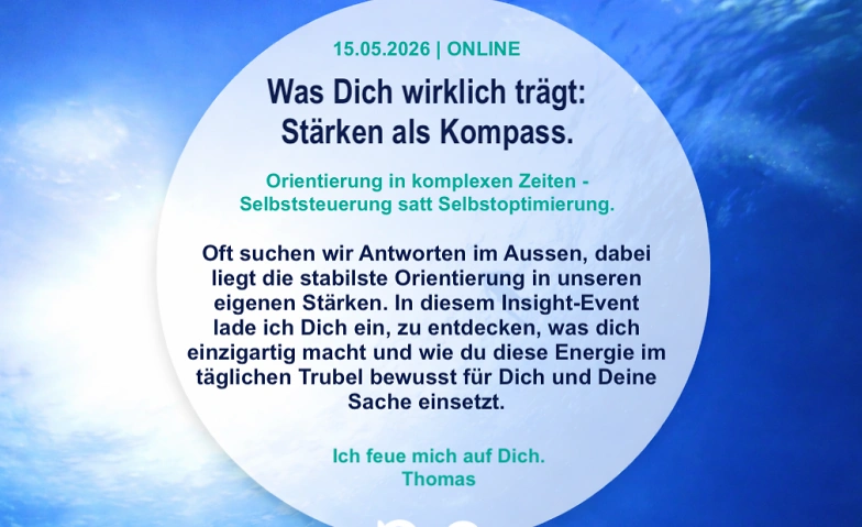 Oft suchen wir Antworten im Aussen, dabei liegt die stabilste Orientierung in unseren eigenen Stärken. In diesem Insight-Event lade ich dich ein, zu entdecken, was dich einzigartig macht und wie du diese Energie im täglichen Trubel bewusst für dich und deine Sache einsetzt.