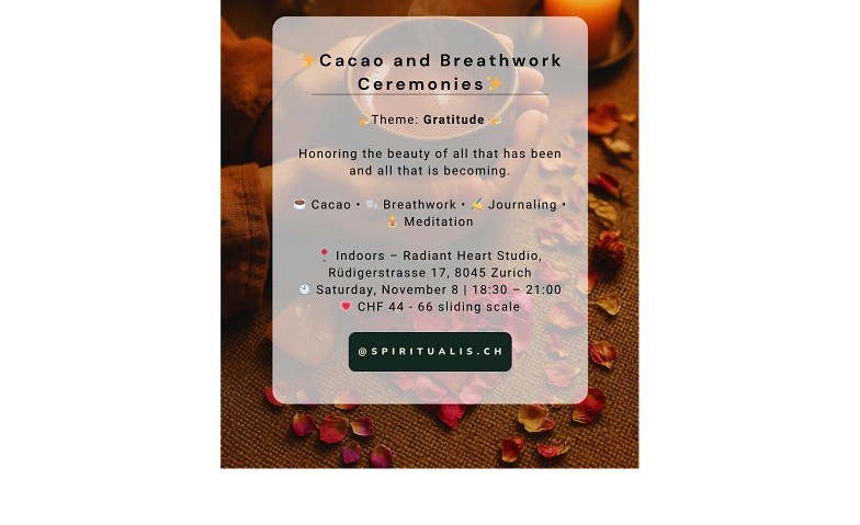 Cacao and Breathwork Ceremony: Gratitude! Radiant Heart Studio, Rüdigerstrasse 17, 8045 Zürich Tickets