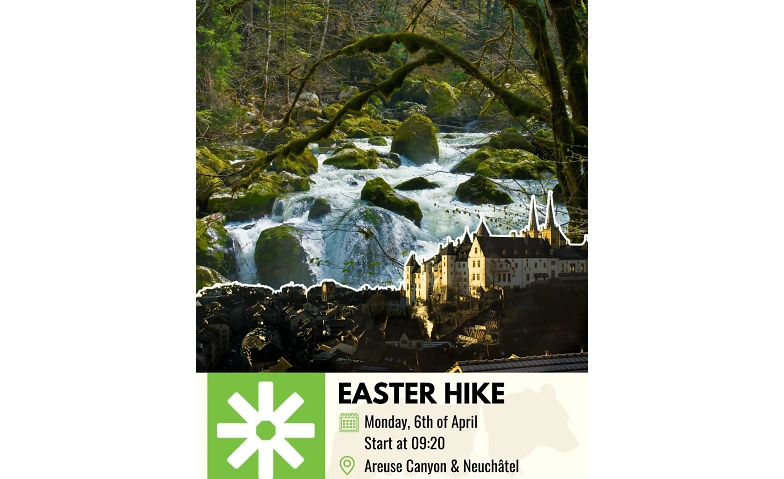 You don’t have any plans for Easter Monday and you long for a hike? Then join us for the hike through Areuse canyon that looks like a setting for a fantasy film! ⛰️✨The interplay of colours, the moss-covered rocks, the enchanted stone bridges, the flowing river, and the bubbling waterfalls all feel like a fairy-tale world you can touch. We start on top of the canyon in the Val de Travers and hike slowly down through the canyon to the lake of Neuchâtel. We’ll visit in the end city of Neuchâtel shortly where you can discover it in your own place.