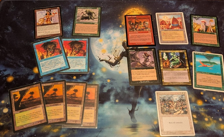 In this tournament, you will get to draft two cubes and play 3 matches with each of the decks. After the first draft with 3 matches, the winners get to play a vintage cube for the big prizes: Lions Eye Diamond, Survival of the Fittest, Force of Will and Windswept Heath, all in original printings(*). The other participants are assigned to other cubes with other players with the same record from the first cube, and the winner of each of those drafts gets a nice price (Goblin Welder, City of Brass, Tutor, Entomb, Pernicious Deed, Birds of Paradise, Wrath of God *)
