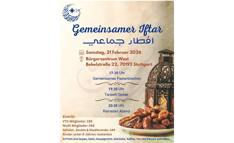 Kommt und erlebt gemeinsam besondere Ramadan-Momente in einer warmen und herzlichen Atmosphäre, in der sich Familie, Freunde und die gesamte Gemeinschaft zum gemeinsamen Fastenbrechen versammeln.