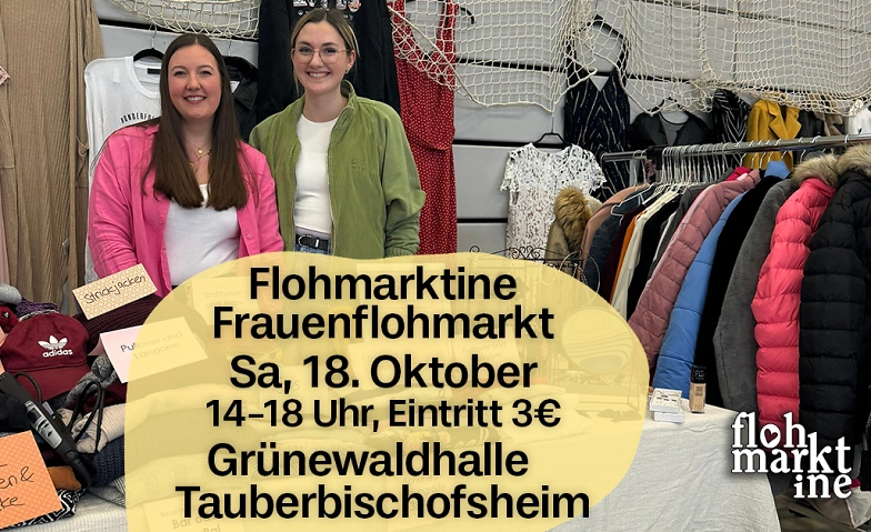 Samstag, den 18. Oktober in Tauberbischofsheim!🫶✨ Flohmarktine Frauenflohmarkt, das nachhaltige Shoppingevent parallel zur Martini-Messe in der Grünewaldhalle in Tauberbischofsheim!🛍️🌿 Du liebst Kleidung, Vintage & Accessoires? Bei uns gibt es alles, was dein Frauenherz begehrt!🫶