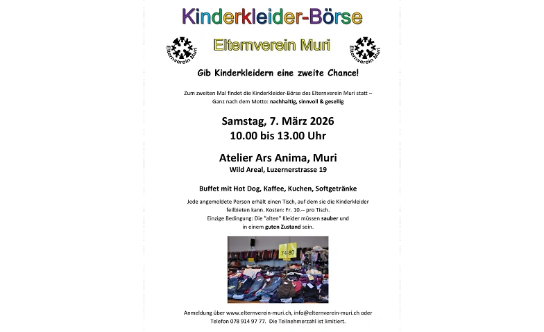 Kinderkleider-Börse Atelier Ars Anima, 5630 Muri, Luzernerstrasse 19, 5630 Muri Tickets