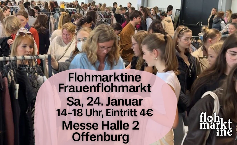 Samstag, den 24. Januar in Offenburg!🫶✨ Flohmarktine Frauenflohmarkt, das nachhaltige Shoppingevent in der Messe in Offenburg!🛍️🌿 Du liebst Kleidung, Vintage & Accessoires? Bei uns gibt es alles, was dein Frauenherz begehrt!🫶