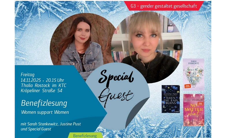 Erlebe Sarah Stankewitz, Justine Pust & Special Guest in einer besonderen Benefizlesung.