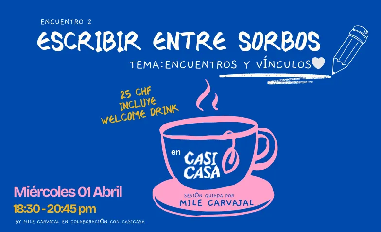 Únete al segundo encuentro creativo del año de “Escribir entre sorbos”, por Mile Carvajal, en colaboración con Casi Casa. Un SPAcio para el alma de escritura, creatividad, conexión, y vulnerabilidad.