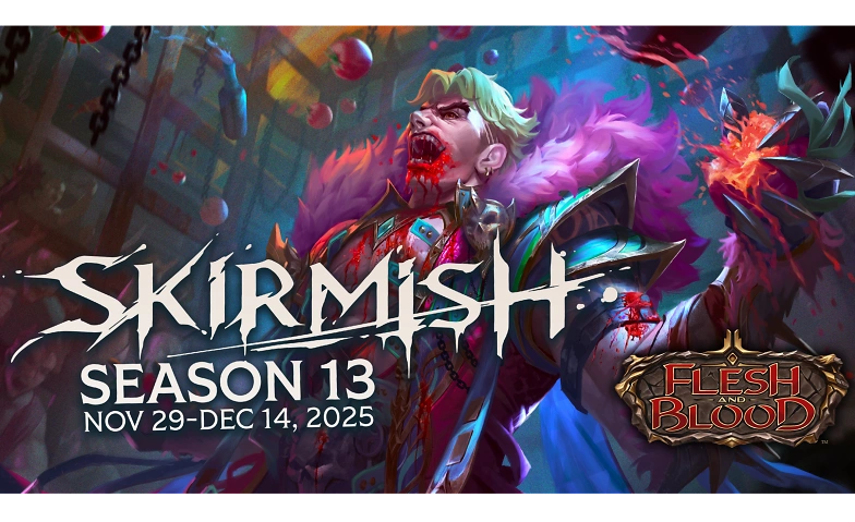 Das Jahr ist fast zuende, aber eine Sache steht noch an: Es ist Skirmish Season 13! Es gibt wieder einen Samstag voller Flesh and Blood Action und diese Season auch zum letzten mal Blitz. Diesen Abschluss dürft ihr nicht verpassen!
