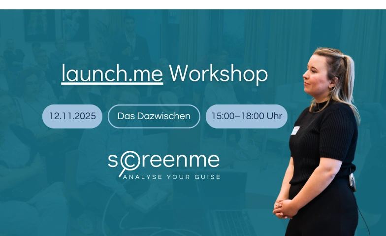• Während des Workshops werden Foto- und Videoaufnahmen gemacht, die im Anschluss auf den Social-Media-Kanälen von screenme veröffentlicht werden. Mit dem Ticketkauf stimmst du der Erstellung und Nutzung dieser Aufnahmen gemäß der Einwilligungserklärung (hier als AGB benannt) zu.