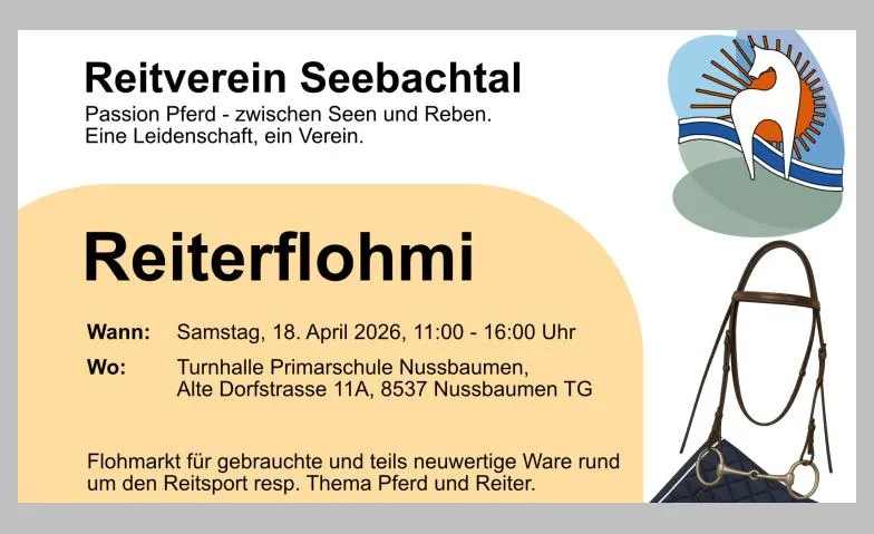 Gut erhaltenes Reitzubehör, Kleidung oder Pferdeartikel können weitergegeben werden. Es besteht die Möglichkeit, einen eigenen Stand zu betreiben. Eine frühzeitige Anmeldung wird empfohlen, da die Plätze begrenzt sind. Eine Teilnahme ist möglich.