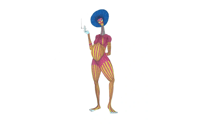 Credits: "Ohne Titel", 2025, Fineliner und Zeichentusche auf Papier, 42 x 29.7 cm