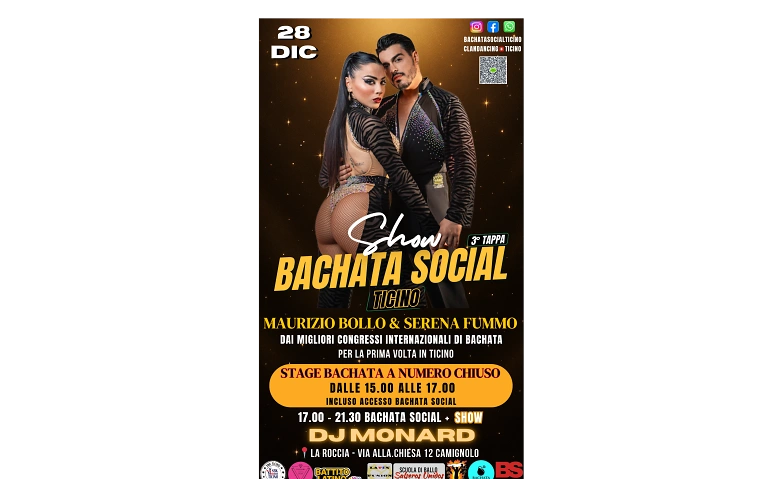 Domenica 28 dicembre, il Bachata Social Ticino avrà l’onore di ospitare due artisti di fama internazionale: direttamente dai congressi più prestigiosi del mondo, Maurizio Bollo e Serena Fummo ️- SHOW️