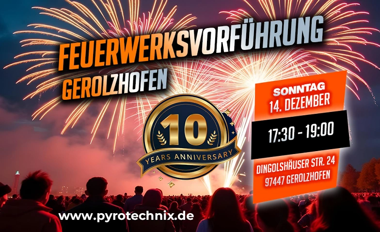 Wir feiern ein ganz besonderes Ereignis – 10 Jahre Pyrotechnix – und laden euch herzlich zu unserer großen Feuerwerksvorführung ein!