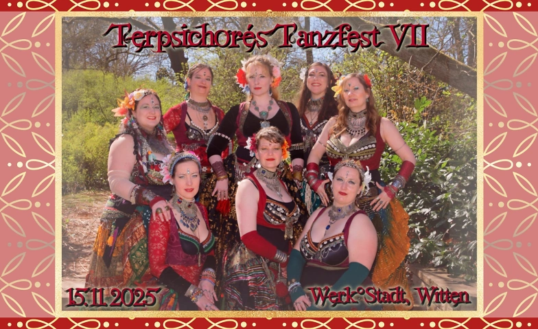 Zum siebten Mal lädt der Dortmunder Tribal-Stamm Terpsichoré zum großen Tanzfest. Die Besucher erwartet ein vielfältiges Auftrittsprogramm mit national bekannten Künstler*innen: Klassische Bauchtanz-Darbietungen treffen auf modernen Tribal Fusion, Soli auf Gruppentänze, leise Töne auf Laute. Eine frühe Ankunft lohnt sich. Zusätzlich lädt ein Basar ab 17:00 Uhr zum Stöbern ein. Für das leibliche Wohl wird ebenfalls gesorgt sein. Im Anschluss an die Show werden bei der großen gemeinsamen Party Hüften und Tanzbeine geschwungen – alle sind herzlich eingeladen, mitzutanzen!