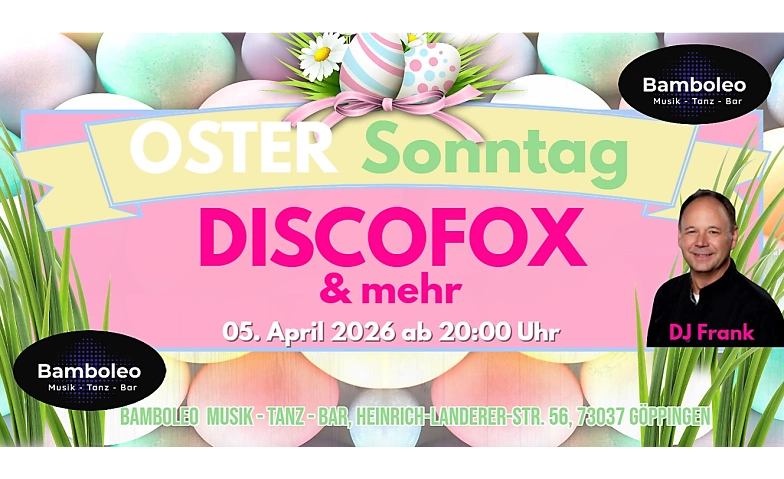 Oster-Sonntag: Party mit Discofox & mehr Bamboleo Göppingen, Heinrich-Landerer-Straße 56, 73037 Göppingen Tickets