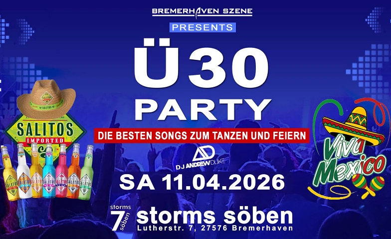 Am Samstag den 11. April geht es mit unserer Ü30 Party Bremerhaven im storms söben weiter. Dieses Mal als Viva Mexico Special (siehe Specials weiter unten)