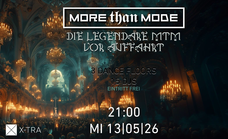 Dank des Feiertags, dem Auffahrts-Donnerstag, ist der Mittwoch davor legendär geworden. Traditionell öffnet die More Than Mode dann gleich drei Dancefloors, auf denen die breite Palette der Schwarzen Musik gespielt wird. 15 DJs geben sich die Klinke bzw. das Mischpult in die Hand. Dazu überrascht unser Visual-Arts-Team mit ungewöhnlichen Einfällen.