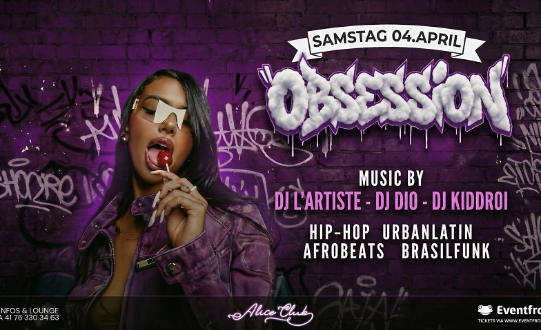 Am Samstag, 04. April erwartet dich im Alice Club eine Nacht voller Energie, Sound und Atmosphäre. OBSESSION steht für intensive Vibes, starke Beats und ein Publikum, das weiss, wie man feiert.