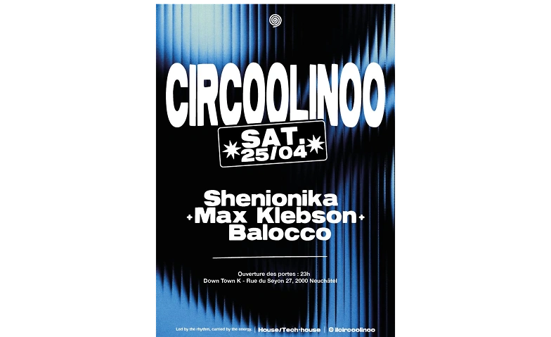 Il Circoolinoo vous donne rendez-vous au DTK à Neuchâtel le 25 avril. Une soirée house guidée par le rythme, les bonnes vibrations et une énergie qui vous emmène jusqu’au bout de la nuit.