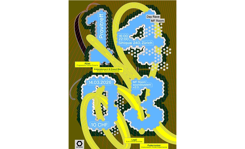 A daytime escape at MF Room Zürich with two live acts, a DJ and a selector guiding the journey. Analogue synthesizers, saxophone and live looping meet progressive feel-good dance music, fast psy-techno and uplifting house.
