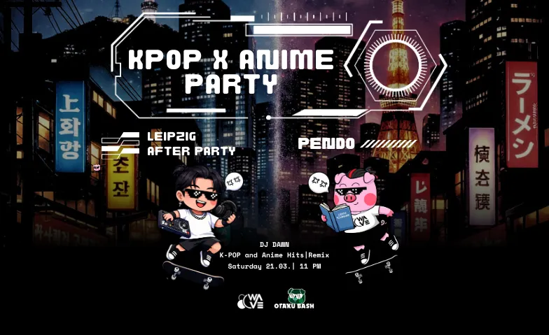 Join us as we bring together the hottest K-Pop and K-Hip-Hop tracks, incredible vibes, and a dancefloor that doesnโt sleep. On March 21st, after the Leipzig Book Fair and Manga Comic Con: K-Pop meets Anime