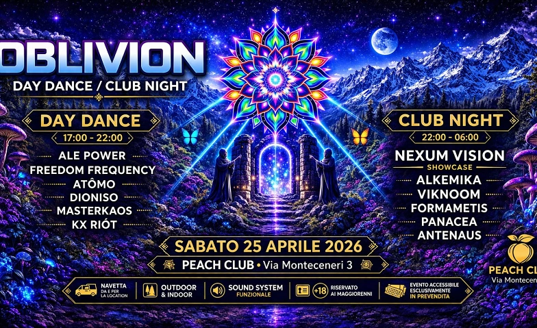 ✨ OBLIVION ✨  DAY DANCE / CLUB NIGHT 13 Hours No Stop Music Peach Club, Via Monte Ceneri 3, 6804 Monteceneri Tickets