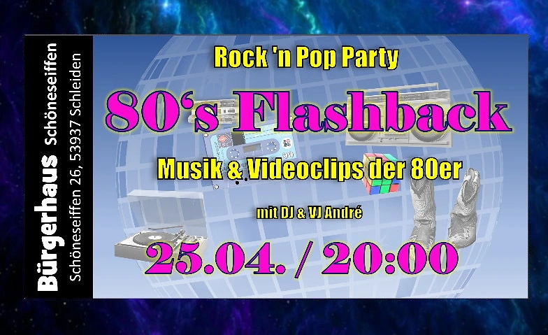 80s Flashback! Rockn Pop Videoparty! Bürgerhaus, Schöneseiffen 26, 53937 Schleiden Tickets