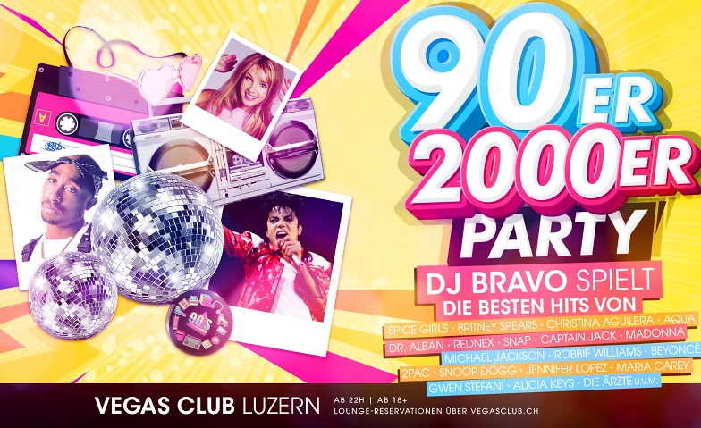 Na Bravo, freut Euch auf eine Partynacht, welche Euch in das frühere Jugendzimmer entführt. Ob Britney Spears, Christina Aguilera, die Spice Girls oder die Backstreet Boys, wir bringen sie alle für Euch - versprochen! Eine Party zum mitsingen, tanzen oder ganz einfach um sich mit Freunden zu amüsieren.