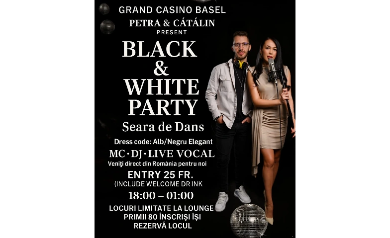 A doua ediție a Petrecerii Black & White transformă Grand Casino Basel în scena unei nopți de neuitat! Vă invităm cu drag și entuziasm la: