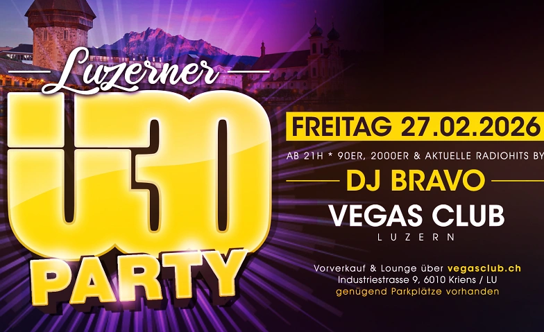Wir freuen uns Euch alle wieder an der Luzerner Ü30 Party im VEGAS Club begrüssen zu dürfen. Für beste Musik ist gesorgt. Im Gebäude vom VEGAS befindet sich ein eigenes Parkhaus.