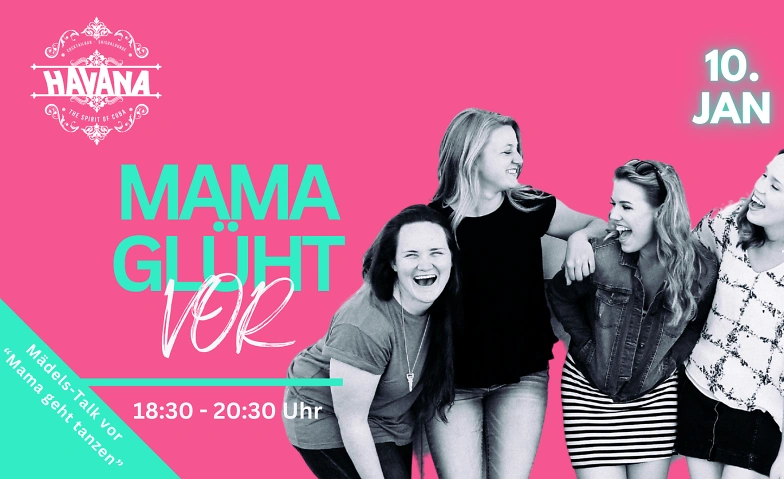 Damit der 💄GIRLS-TALK💄und die perfekte Einstimmung nicht zu kurz kommen, starten wir im HAVANA für die Frühstarter-Mums schon um 18.30 Uhr mit "Mama glüht vor"!