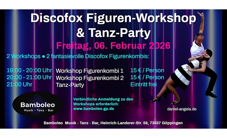Discofox Figuren-Workshop & Tanzparty Bamboleo Göppingen, Heinrich-Landerer-Straße 56, 73037 Göppingen Tickets