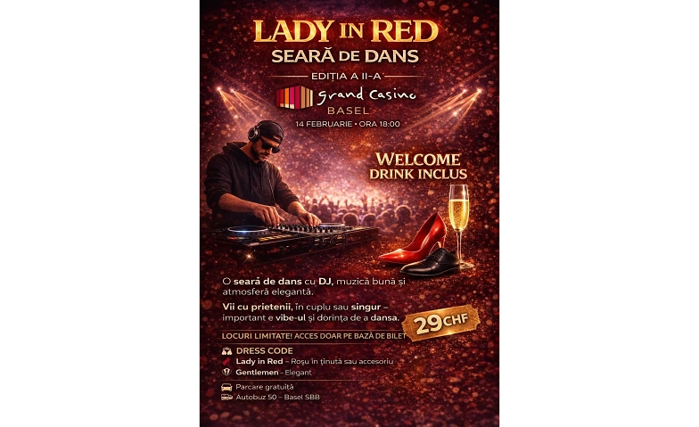 Ne întâlnim la Grand Casino Basel – Lady in Red, Ediția a II-a, pentru o seară de dans, socializare și voie bună, exact așa cum trebuie: relaxat, elegant și cu mult chef de viață.