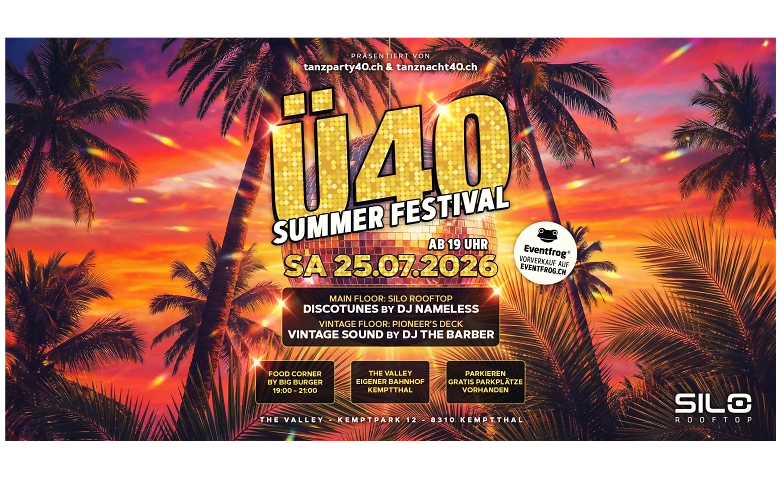 tanzparty40.ch & tanznacht40.ch präsentieren das Ü40 Summer Festival in der einzigartigen SILO Rooftop Location.