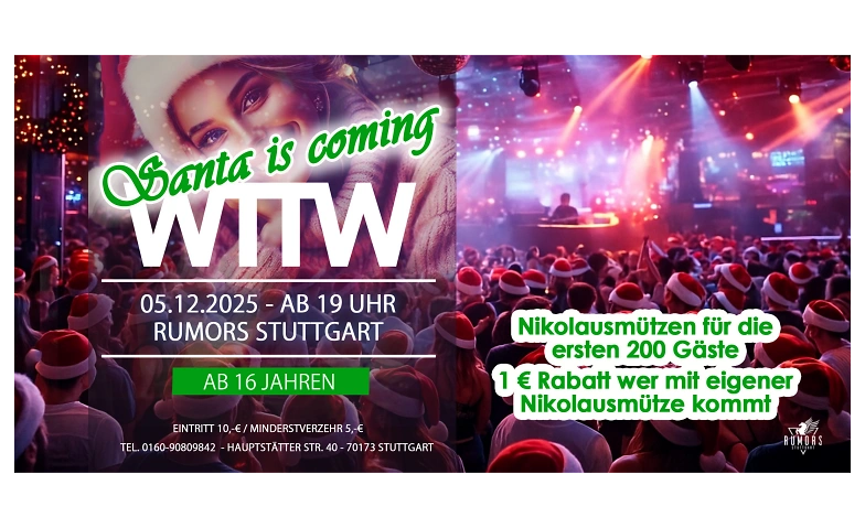 WTTW (ab 16 Jahren) - Santa is comming Rumors Club Stuttgart, Hauptstätter Straße 40, 70173 Stuttgart Tickets