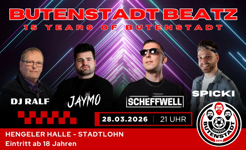 Freut euch auf eine Nacht voller Beats, Bass & Butenstadt-Spirit – ein Event, das Stadtlohn so schnell nicht vergisst.