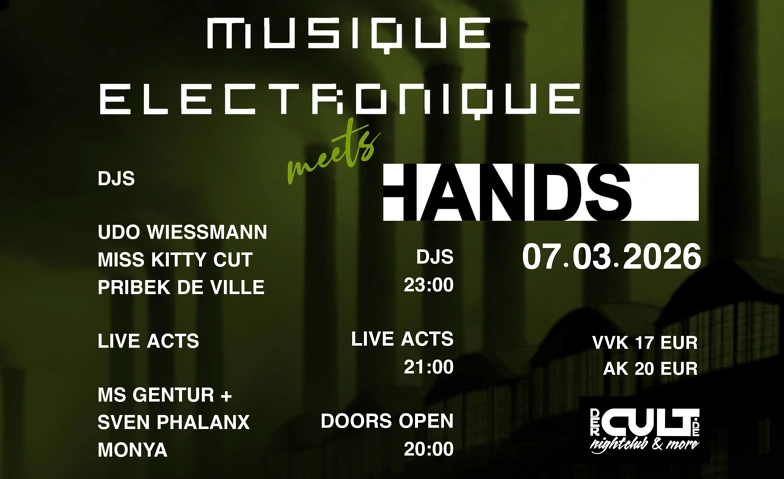 MUSIQUE ELECTRONIQUE meets HANDS Der Cult - Nightclub & more, Dooser Straße 60, 90427 Nürnberg Tickets