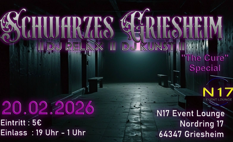 N17 präsentiert: "SCHWARZES GRIESHEIM" Dark Party Goth / EBM N 17 EVENT LOUNGE Griesheim, Nordring 17, 64347 Griesheim Tickets
