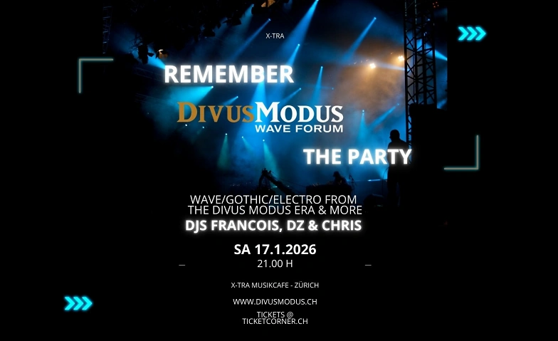 Divus Modus hatte von 1999-2012 die Wave-Szene mit vielen Aktionen, Konzerten und Parties gerockt. Es gab nicht nur coole Musik und super Bands kennenzulernen, sondern es sind auch an den Events viele Freundschaften entstanden. Diese Party ist die Gelegenheit, sich wiederzusehen und wieder einmal gemeinsam eine coole Party zu schmeissen. Für die Sounds verantwortlich sind die drei legendären Divus Modus-DJs Francois, DZ & Chris. Und, auch wenn Du damals nicht dabei warst, bist Du herzlich willkommen.